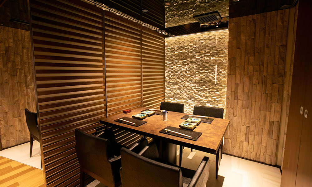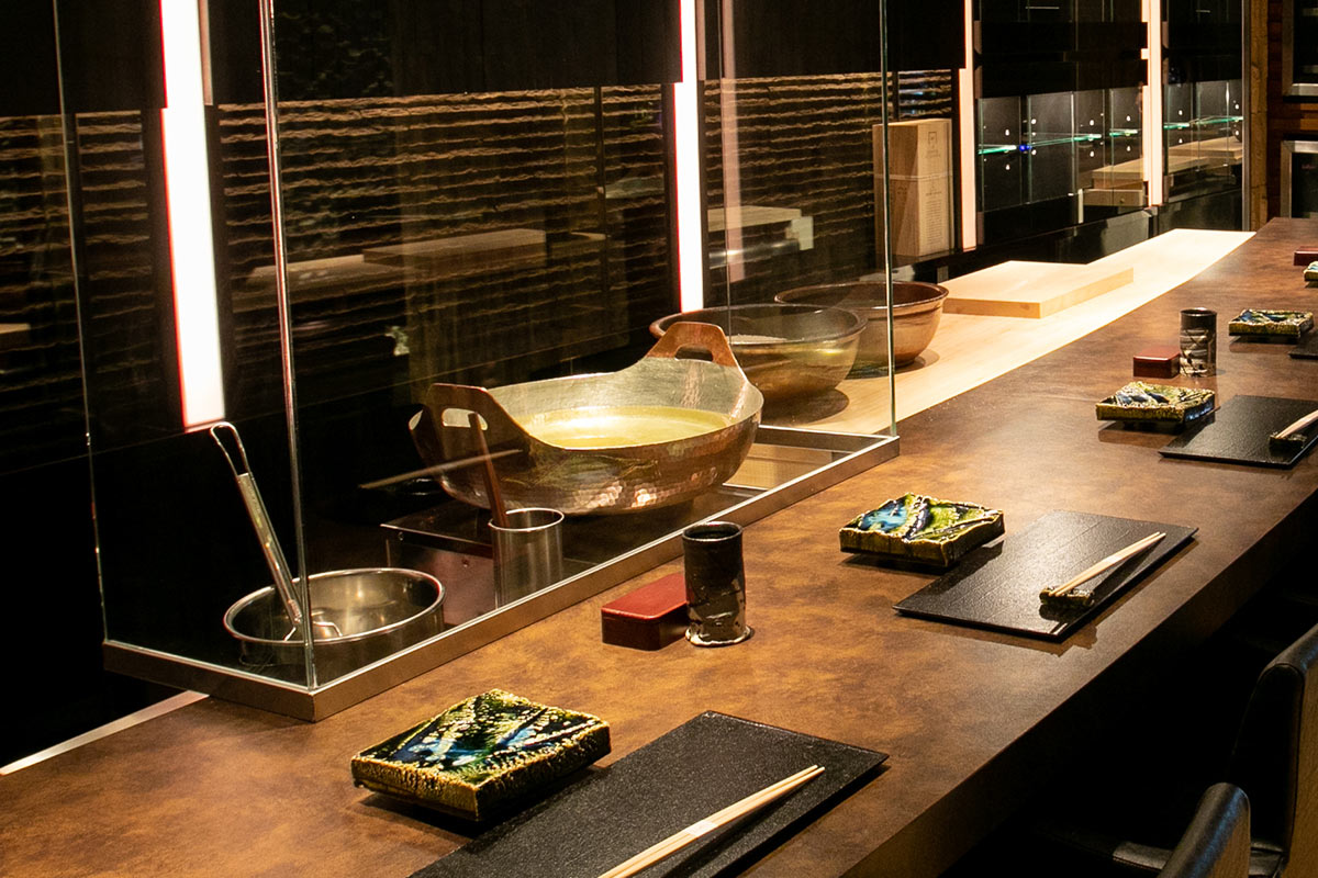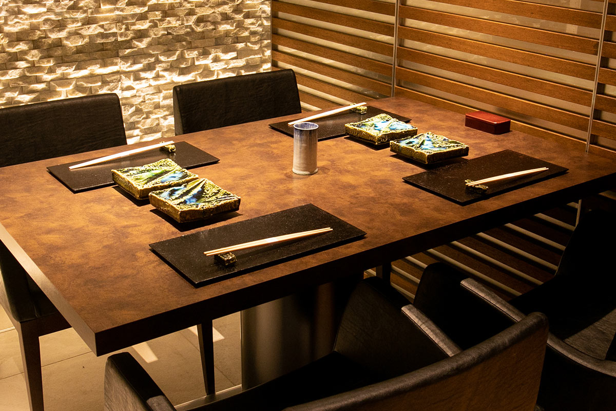 落ち着きのあるカウンターと上質な個室では、お客さまの大切なひと時を心ゆくまでお過ごしいただけます。