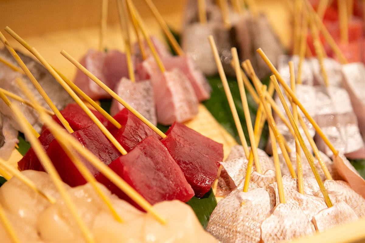 串揚げ本拠地の大阪でも類を見ない趣向を凝らした串揚げは、サクサクとした衣の食感と、海鮮を中心に厳選された具材を楽しんでいただける自慢の逸品です。素材選びから調理法まで伝統とオリジナルを融合させた味わい深い一品をお楽しみいただけます。