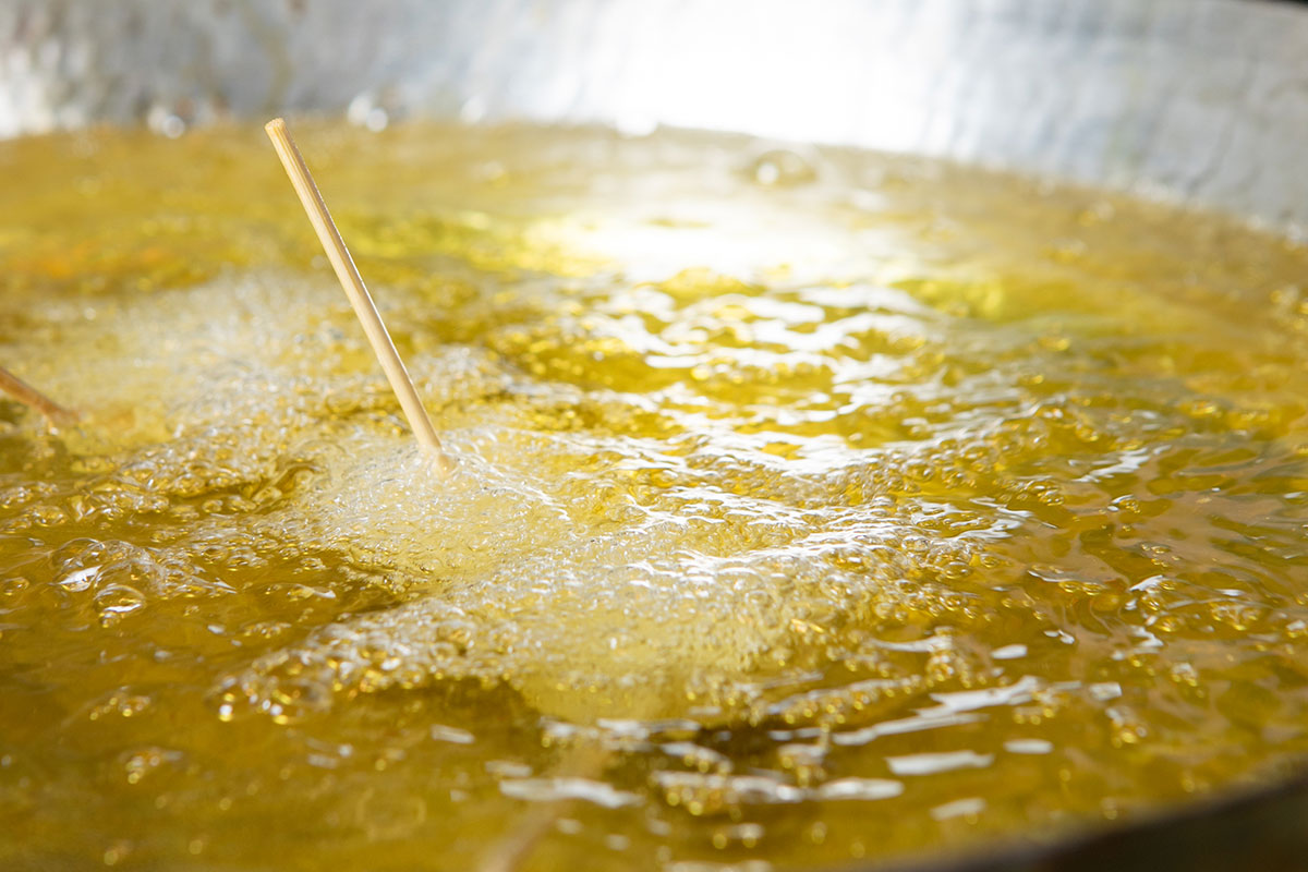 具材だけでなく油や衣にも工夫をほどこし、香りや食感も大切に調理。最適な状態で召し上がっていただけるよう、油の温度はもちろんのこと提供するタイミングにも細やかな技を凝らしています。
