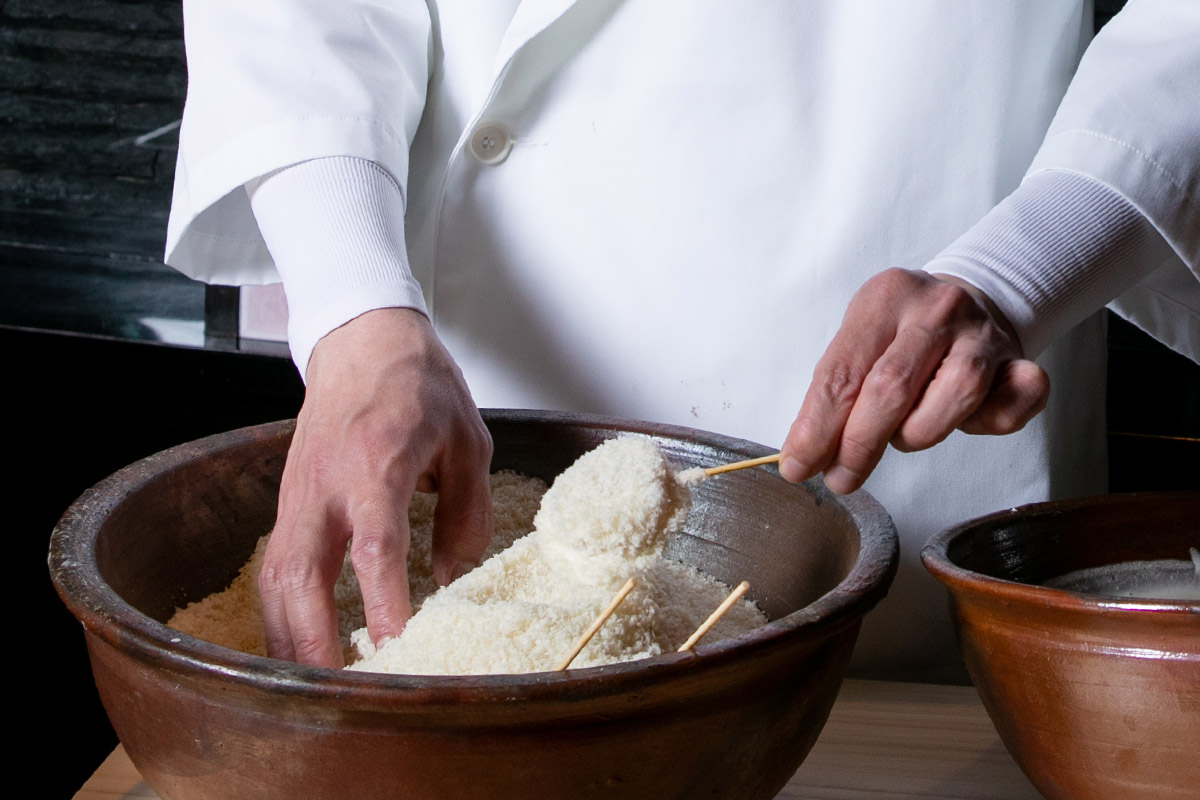 具材一つひとつを丹念に料理し、絶妙なバランスで創り上げた一串は、味だけでなく食材のフォルムにも拘り料理を「見る」楽しさも感じさせる、独創的な「唯一無二」の串揚げです。